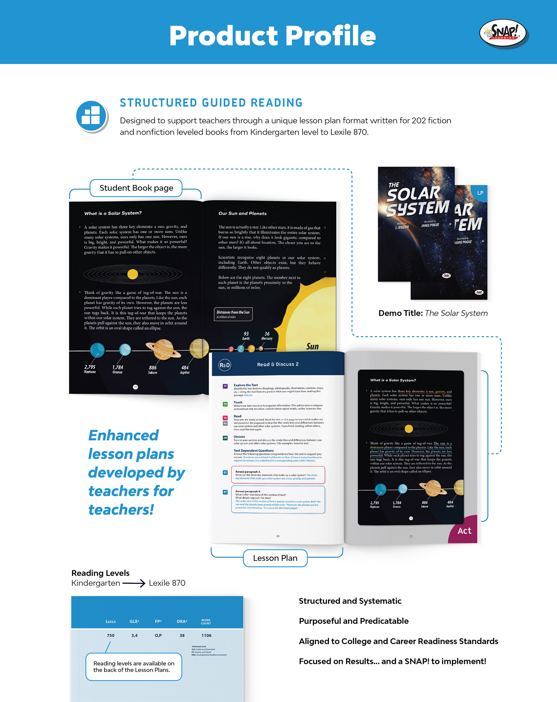 Created for SNAP! Learning. I participated in the management and execution of the update of SNAP! Learnings' book series: Structured Guided Reading. The series consisted of 202 story titles. Each title had a Student Book and a corresponding Lesson Plan. For the Student Books, I applied layout updates, re-designed book covers, touched-up on existing illustrations, and created custom graphics when necessary. I also participated in the redesign of the layout template for the Lesson Plans. On the project management side, I did complete a overhaul on the file organization of all working files and coordinated with writers, editors and translators during the development process. Below is a product profile which gives you an idea of the scope of the project.